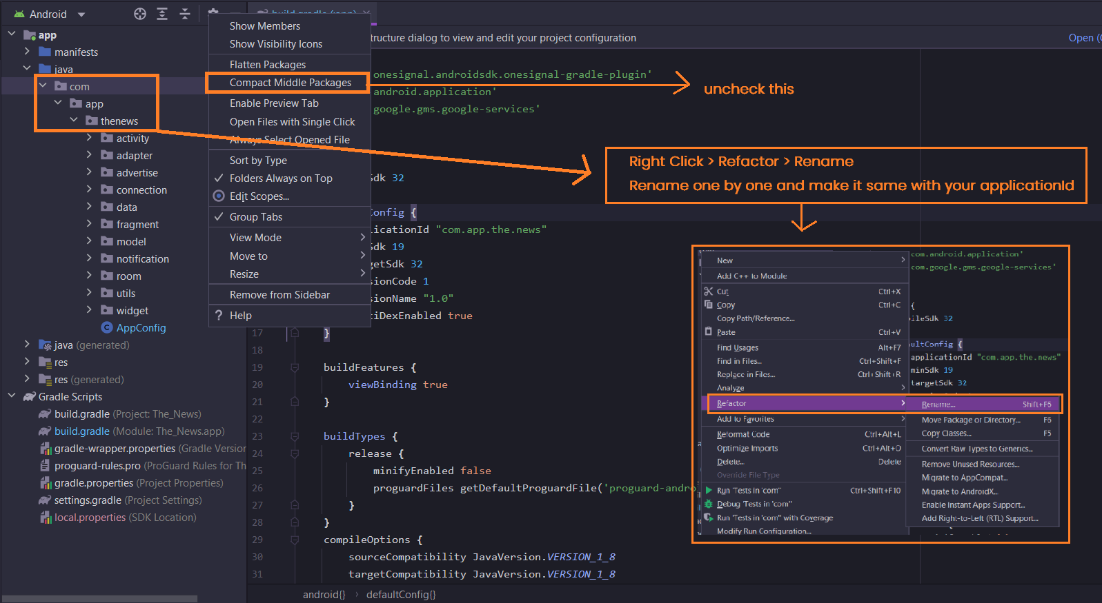 This step is optional, because unique id for app identifier already configure at Step 1 above, you can go without change package folder name, but if you want to change id here the step
