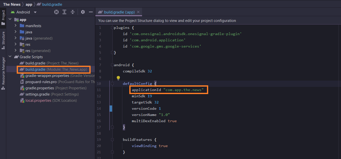 1. Open **Gradle Scripts → app/build.gradle**
